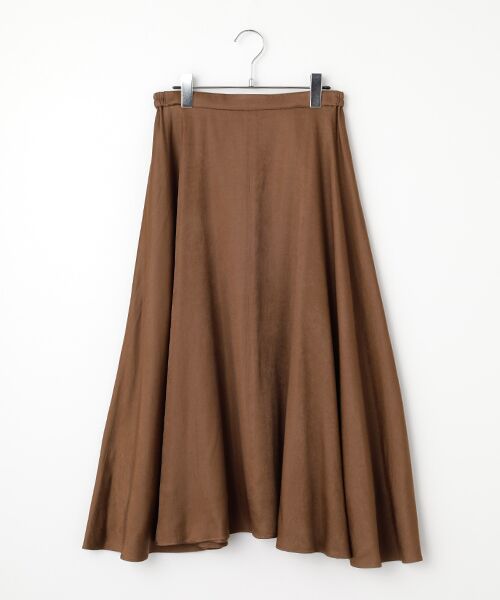 <人気スタイリスト大草直子さん監修ショップ>シーズンムードを高める、上品な光沢感のサテンフレアスカート。落ち着いた艶感とほどよい重みのある生地が、秋冬らしいエレガントな雰囲気を演出します。揺れ感のあるシルエットが女性らしさを引き立てつつ、ニットやジャケットなど厚手アイテムとも相性抜群。オンオフ問わず幅広く活躍する一枚です。