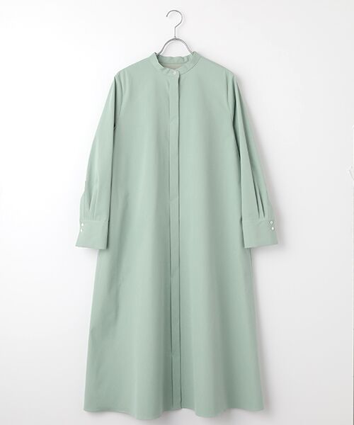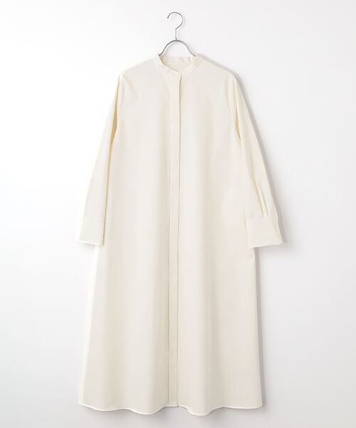 <人気スタイリスト大草直子さん監修ショップ>スタンドカラーとすっきりとしたシルエットが端正な印象を与えるシャツワンピース。一枚でさらりと着こなすのはもちろん、ボタンを開ければ羽織としても活躍します。ニットやジャケットとのレイヤードもおすすめです。