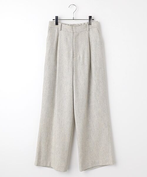 <人気スタイリスト大草直子さん監修ショップ>尾州産の上質なメランジ生地で仕立てたワイドパンツ。程よい落ち感とハリのある素材が、美しいシルエットを引き立てます。タックを入れたフロントデザインで、腰まわりをすっきり見せながらも快適な穿き心地に。同素材のジャケット(YKHAM5AJK1008)と合わせれば、シーンを問わず活躍する上品なセットアップスタイルが完成します。