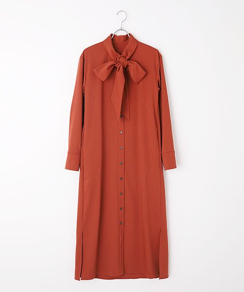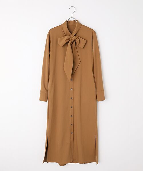 <人気スタイリスト大草直子さん監修ショップ>首元のボウタイが上品なアクセントになるワンピース。一枚で華やかさときちんと感を兼ね備え、オンにもオフにも活躍します。シワになりにくく快適な着心地で、タイの結び方次第で表情を変えられるのも魅力。通勤からお出かけまで幅広いシーンで活躍する、上品な一着です。