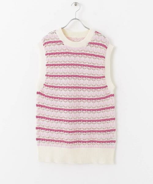 カラフルな編み柄を取り入れたゆったりシルエットのニットベスト