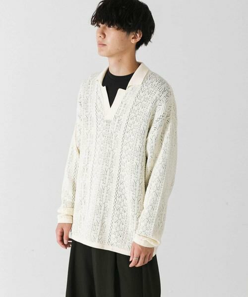 上品なデザインとレース編みのデザインニットポロ