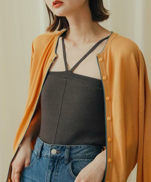カーディガンやジャケットのインナーに着用すれば、トレンド感のあるスタイリングに仕上げてくれます。