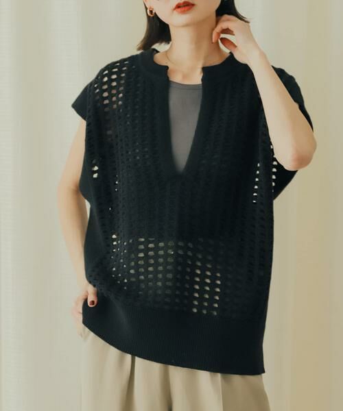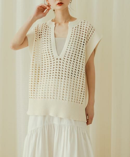 メッシュ見えのホールデザインの編み地がトレンド感のある1枚