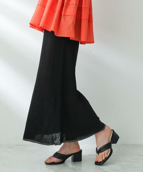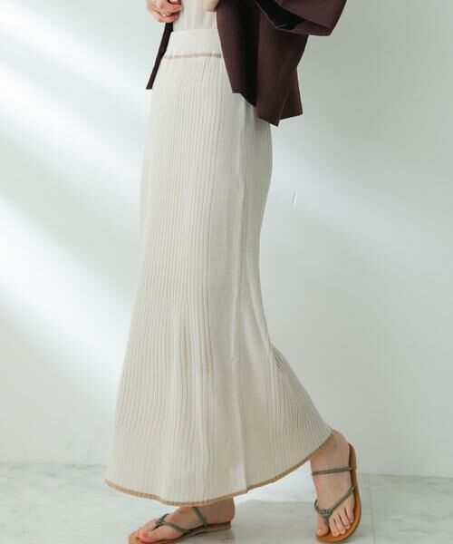 表情豊かなリブ編みで仕上げたロング丈のニットスカートです。