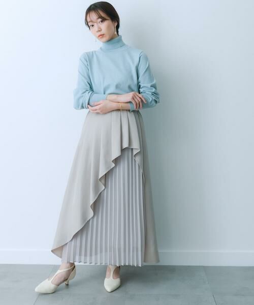 コンパクトセーターなどシンプルなトップスと合わせた時に活躍するスカートです。綺麗めなシーンではヒールのある靴が◎