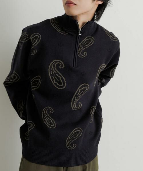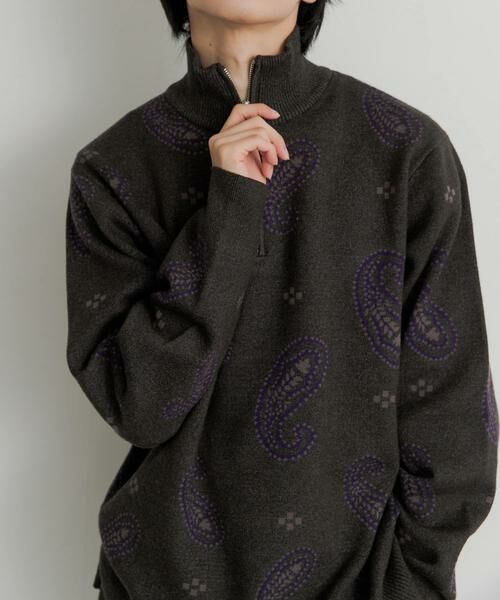 〇ヴィンテージの雰囲気を感じるペイズリーモチーフの総柄ジャガードニット