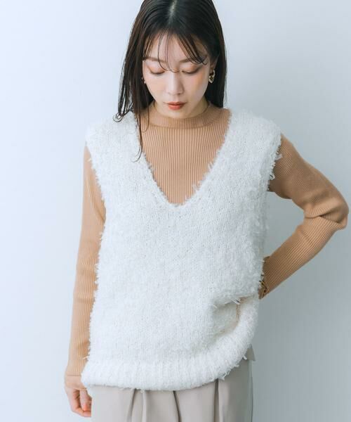 シンプルなシャツの上に被るだけでトレンド感のあるスタイリングに仕上がります。ベーシックな色展開なので差色のアイテムやボトムとの相性も抜群です。