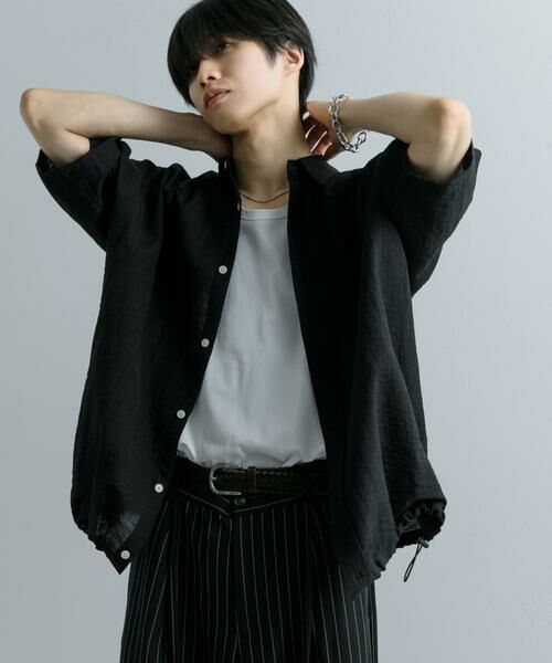 ベーシックなアイテムですが裾のドローコードによりパンツのシルエットに合わせた着こなしが可能です。ワイドパンツと合わせるときは裾をしぼって短丈に、テーパードシルエットのときはコードをのばしてきれいめに。