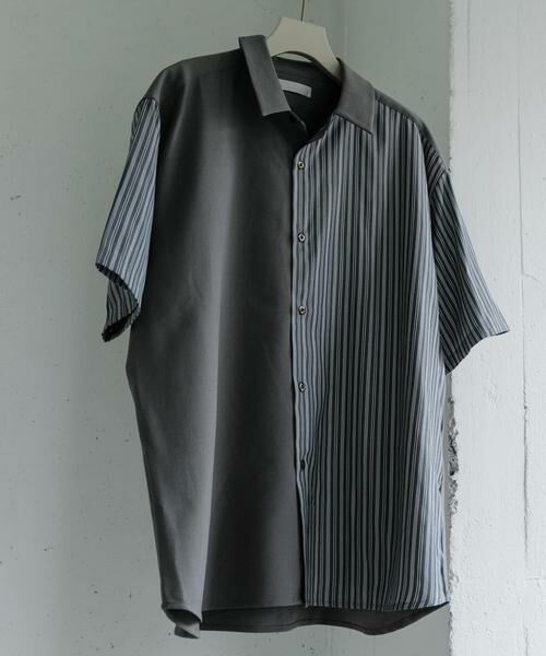 ストライプブロックドシャツ(5分袖)
