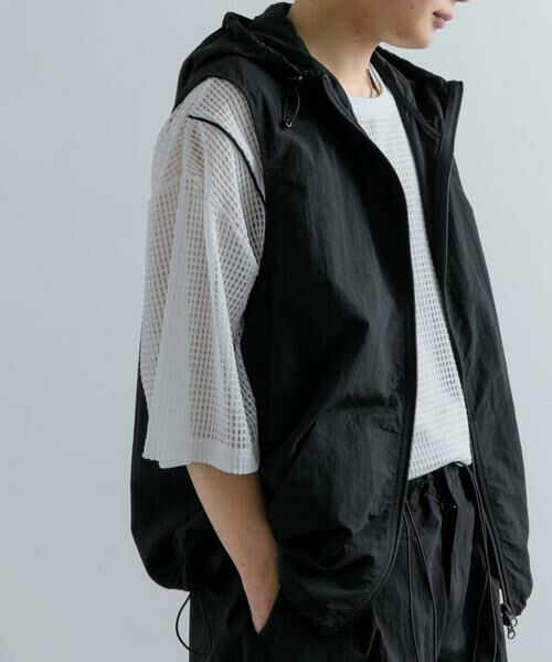 夏場のレイヤードスタイルに活躍するフーデッドベスト