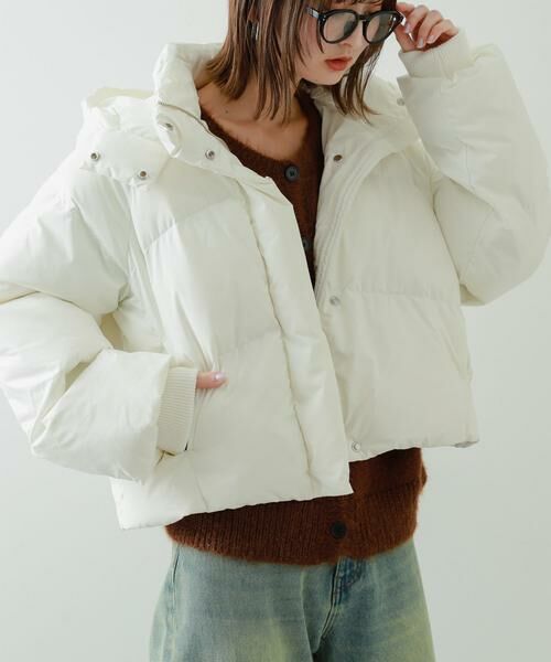 短すぎないショート丈なのでハイウエストのもの以外のボトムともバランス良く着ていただけます。表面感のあるスカート合わせが今季オススメです。