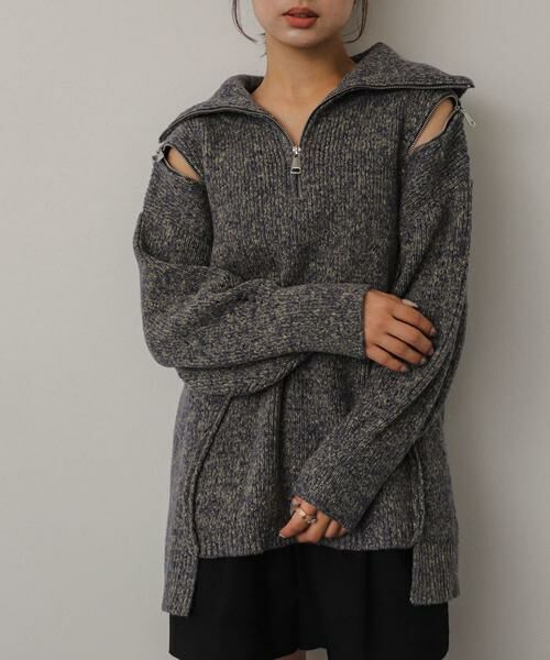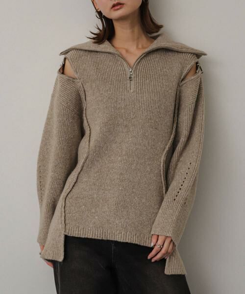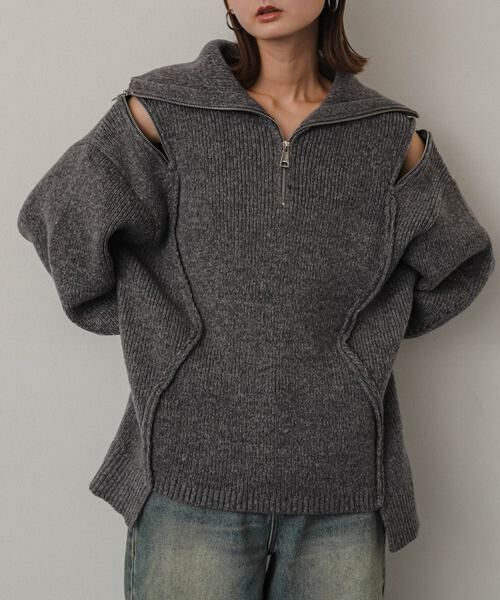 ジップデザインが特徴的なニットは1枚着でも、ジップを開けてレイヤードコーデもおすすめ〇様々なコーデに馴染むベーシックなカラー展開も嬉しいポイントです。