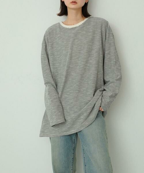 〇幅広いスタイリングに相性がいい細めボーダー