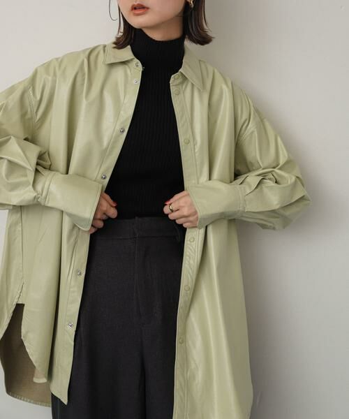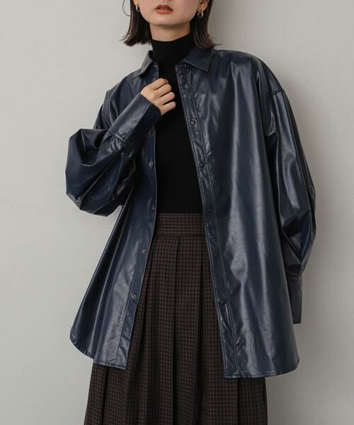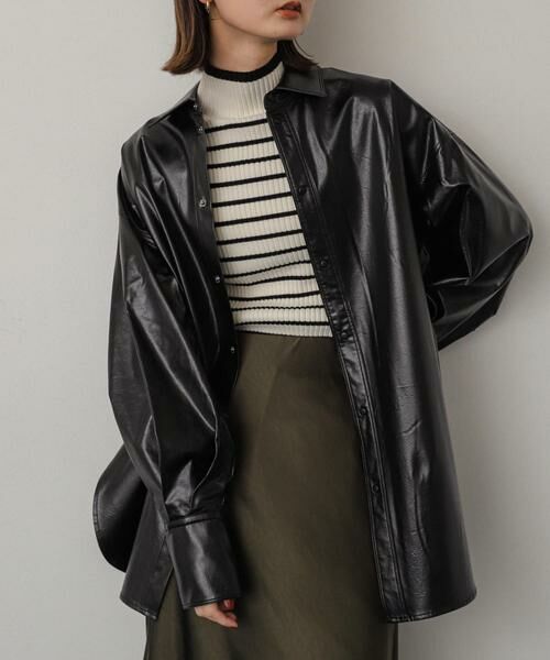 インパクトのあるフェイクレザーがモードな印象のシャツ