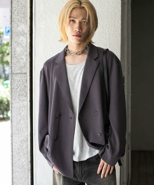〇着心地軽やかなカットソー生地で仕立てたダブル仕様のジャケット