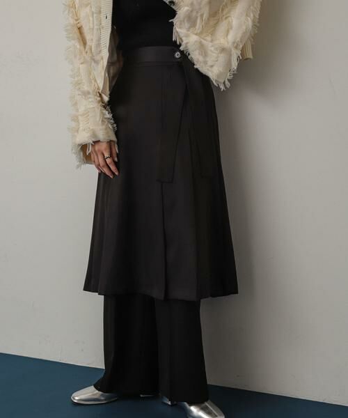 トレンドのミディ丈スカートはオンオフで楽しめる万能アイテム。同系色のボトムスとのレイヤードコーデがオススメです!