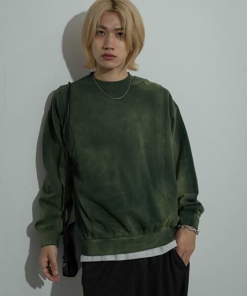切り替えのデザインと全体的に加工を施し、色ムラがヴィンテージ感を演出しています。トレンドのY2Kや古着MIXといったスタイリングとの相性が良いです。