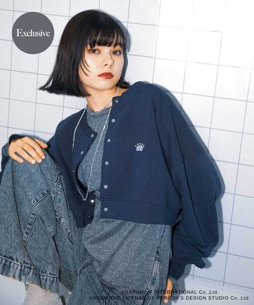 今回35周年でもあるANGELBLUEとのコラボが実現☆★☆クロップド丈仕様なので、肌見せなどヘルシーな着こなしはもちろん前空きタイプでカーディガンとしても着用していただける万能アイテムです!胸元にはANGELUBLUEのロゴを用いた刺繍やナカムラクンをアクセントに◎バックプリントにもナカムラクンや他キャラクターを使用箔プリントも加え大人っぽく仕上げたアイテムです。普段使いにも最適でぜひ、懐かしい気持ちと可愛さをコーディネートにプラスワンしてみてください♪
