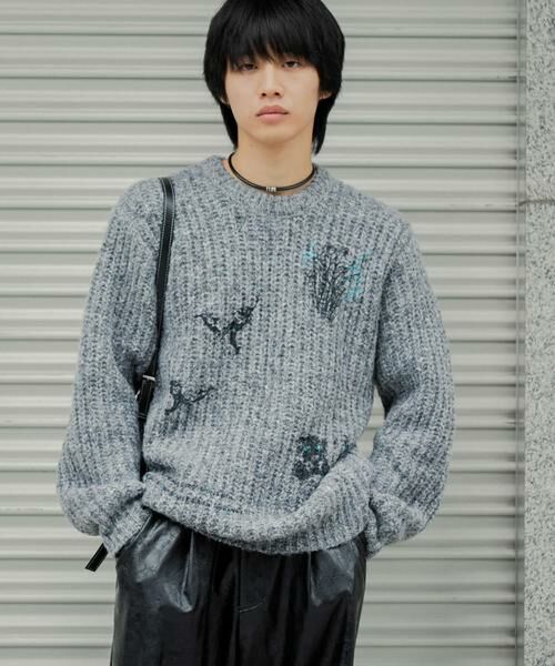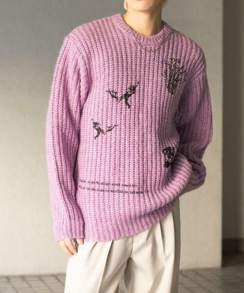 甘い表情にニットにグラフィックをあしらった構成派ニット