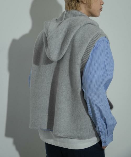 モヘアライクなシャギーでふんわりと暖かいフーディニットベスト。