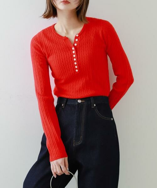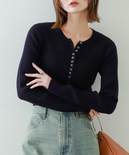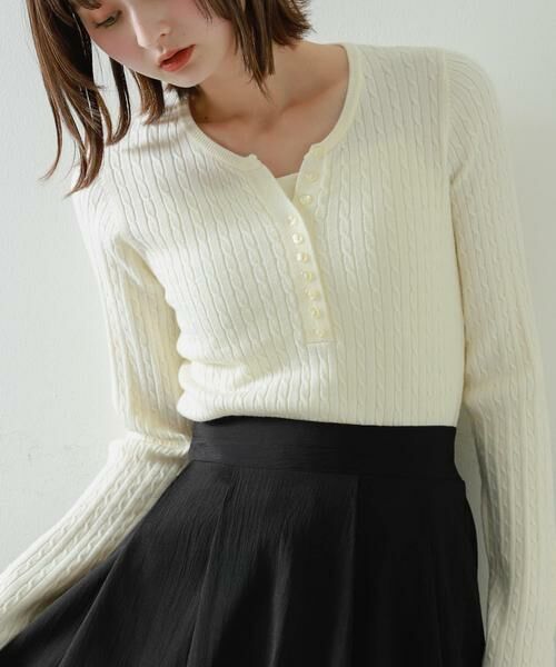 『WEB/一部店舗限定カラー』ヘンリーネックミニケーブルセーター