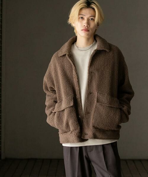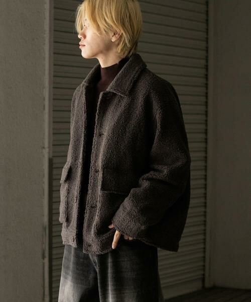 ふっくらしたプードルボアで仕立てたショート丈ブルゾン