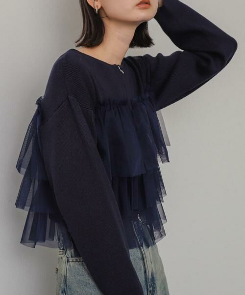 秋大人気だったフリルニットを冬仕様にアップデート。一枚で着映えするアイテムです。シンプルなボトムやデニムでも、キャミワンピースの羽織などにもおすすめです。フリルのボリュームはありますが柔らかい素材なのでジャケットの中にも着込めます。