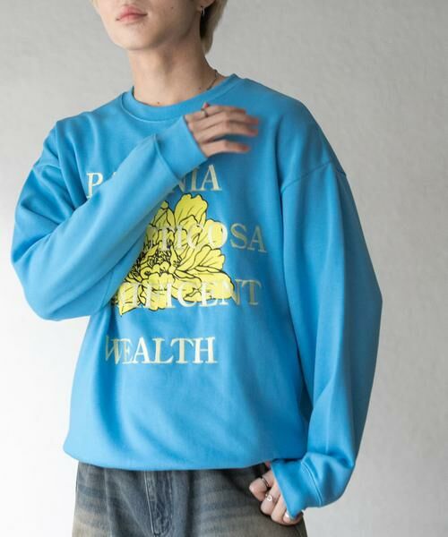 冬場も暖かく着られる裏起毛生地を使用大胆にあしらったボタニカルプリント×刺繍がインパクトのある一着