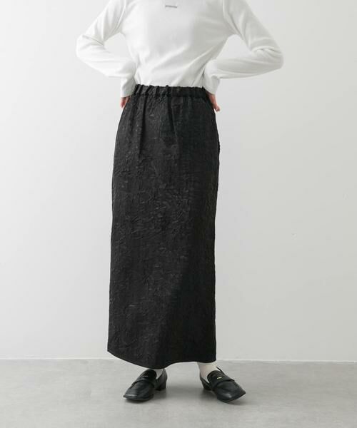 艶のある素材感がポイントのスカート。ウエストゴムで紐付きなのでウエスト周りも楽に着用いただけます。クリンクル加工で表面感もあり、スウェットやルーズなニットとのシンプルなスタイリングもワンランクアップのコーデに仕上がります!
