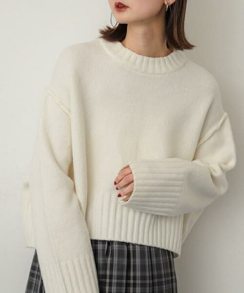 ゆったり目のサイズ感でふわっとした着心地が特徴のセーター◎首元と袖口のリブ編みがアクセント!ボトムスを選ばないシンプルなデザイン且つ・カラー展開が豊富なのでコーディネートにも合わせやすいデザインです。
