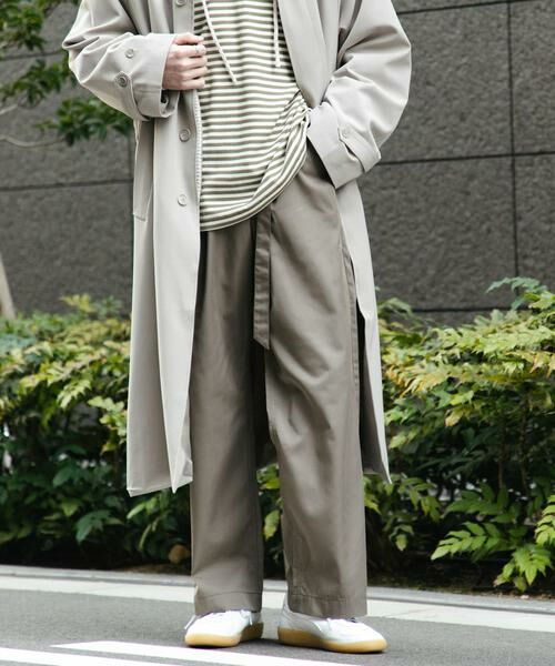 大人の雰囲気漂う共地のベルト付きのストレートパンツが登場。