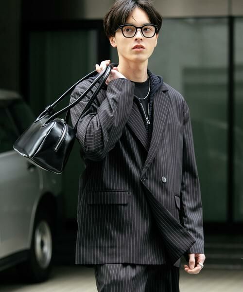 AAA4-14A002 ピンストライプタックワイドスラックスとセットアップで着用していただけます。セットアップに限らずデニムなどカジュアルなボトムスとも相性良く合わせていただけます。インナーにはカットソーやパーカーなどカジュアルアイテムからシャツを合わせたきれいめスタイルまで幅広く合わせていただけます。