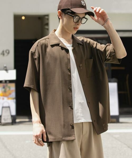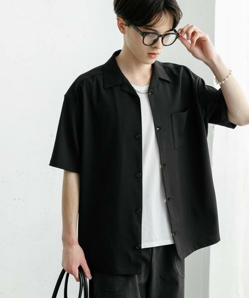 『ユニセックス』オープンカラールーズショートスリーブシャツ