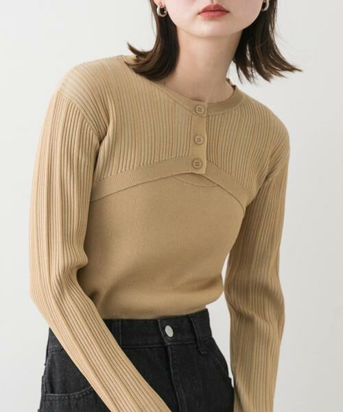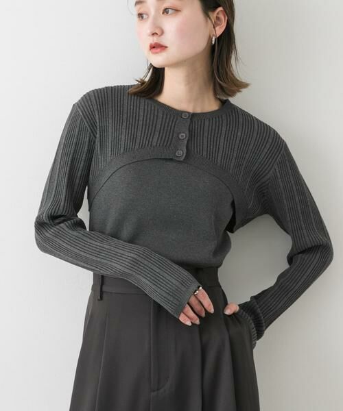 上下で編地を変え馴染みやすい配色デザインの今年らしい一枚。2点セットで着回しも抜群!上のボレロはTシャツと重ねたりキャミワンピースなどと合わせるのもおすすめです♪タンクトップはシンプルなデザインなので羽織りアイテムなどの下に仕込むのも◎