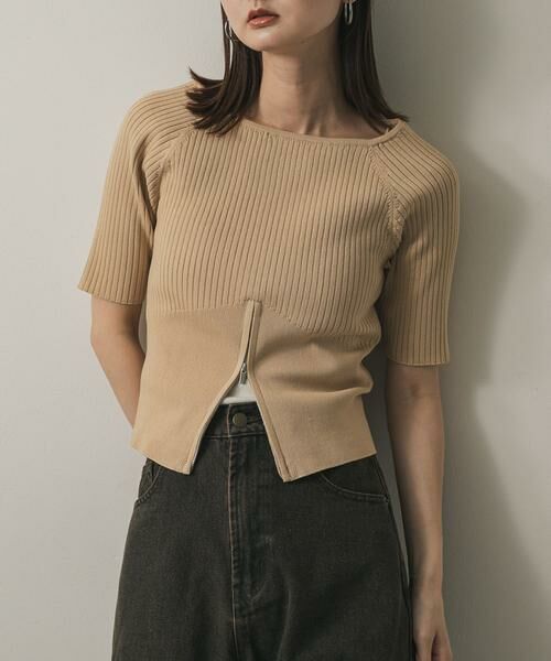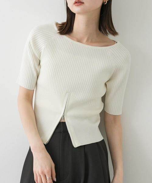 シンプルながら裾デザインや首元のカットで綺麗に見えるニット。タックパンツやペンシルスカートで綺麗めにまとめたスタイリングがおすすめです。