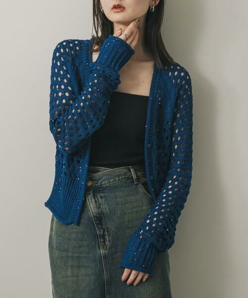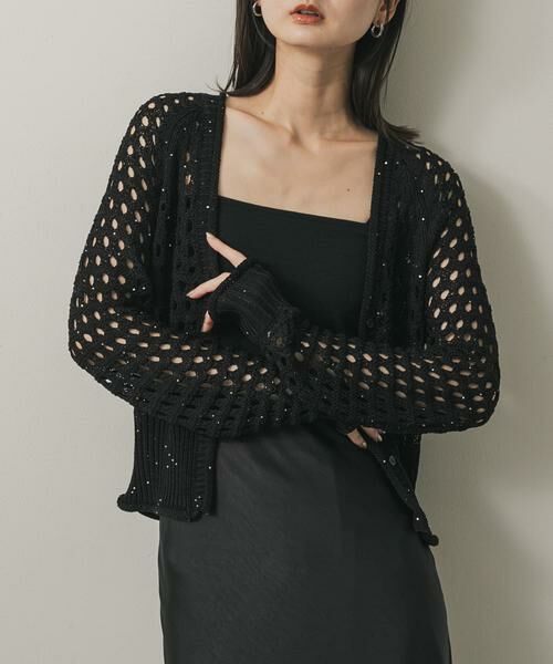メッシュ素材に華やかなスパンコールが入ったカーディガン