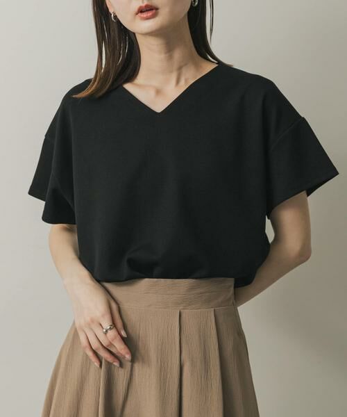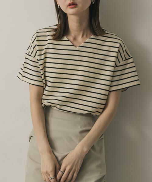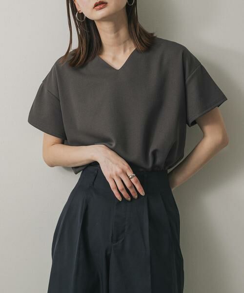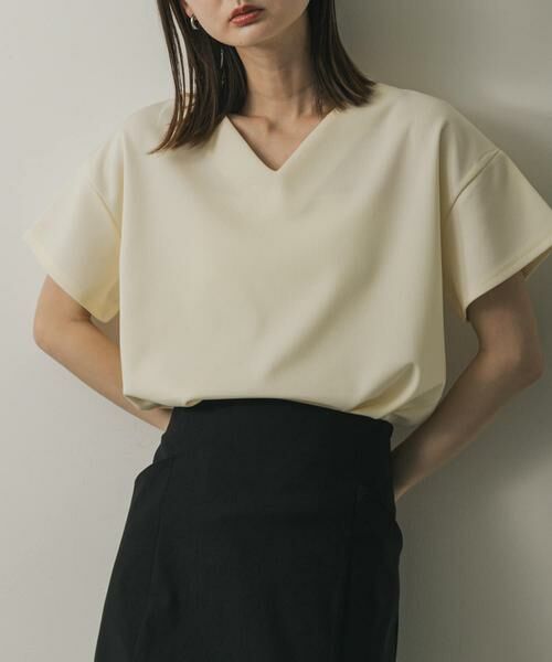 〇Vネックのデザインで、首元をすっきりと見せてくれます