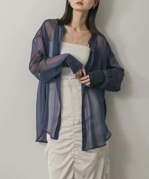 パンツでもスカートでも着こなしやすいシアーシャツ。春はロンT、夏はキャミソールやタンクトップと合わせて着こなしの幅を広げることが出来ます!腰巻やたすき掛けでコーデのポイントにしても〇冷房対策にも使える優れものです。