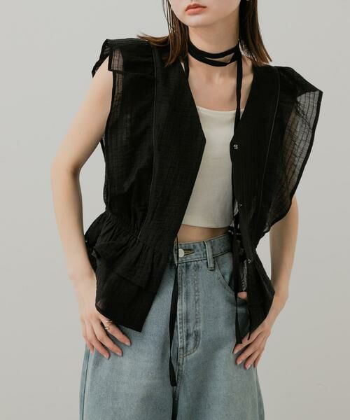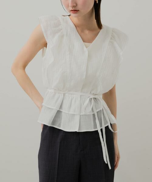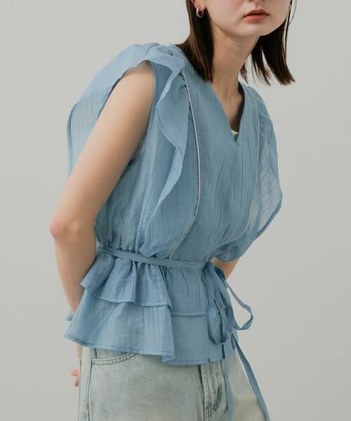 上品でフェミニンな魅力を引き出すフリルフレンチブラウス