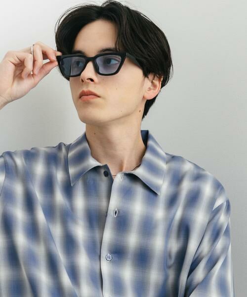 シャープな印象のシルエットがコーディネートのアクセントになるキャットアイ型のサングラス。