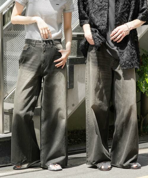 〇太ももから裾まですとんとしたワイドシルエット。穿くだけでかっこよく決まる一本。
