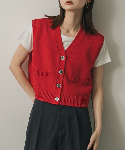 クロップド丈なので、ワイドパンツなどボリュームシルエットパンツとのメリハリのあるバランスがおすすめです。暖かくなってきたら、インナーをタンクトップにし一枚着としてお召しいただくのも素敵です。