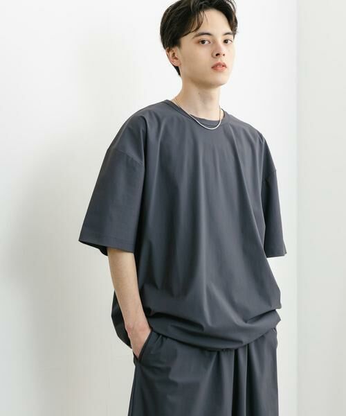 オーバーサイズが特徴のTシャツ。インナー使いはもちろん、一枚でも夏のコーディネートの主役に。おすすめは太めのボトムスでのスタイリング。デニムやナイロンパンツでカジュアルに仕上げたり、スラックスでキレイな印象にしたりと合わせるボトムスによって印象が変わります。AAA5-14B107 4WAYストレッチショートパンツ、AAA5-14B118 4WAYストレッチウェビングベルトパンツとセットアップで着用していただけます。