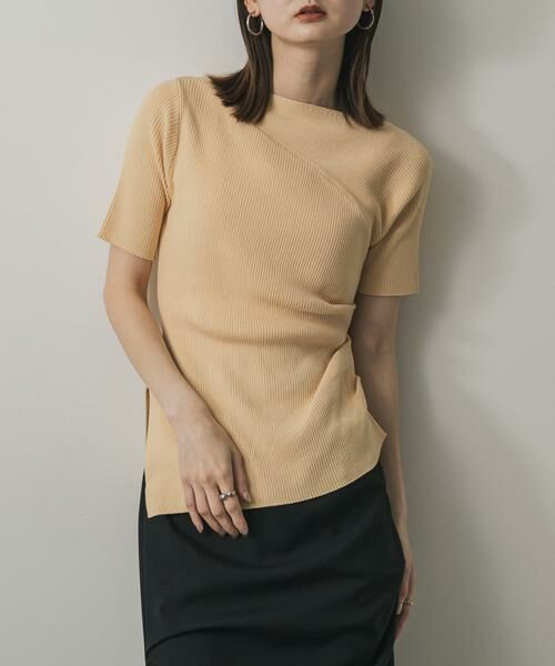 人気のデザインを夏でも継続。デコルテデザインが華奢見えする、一枚で決まるニット。