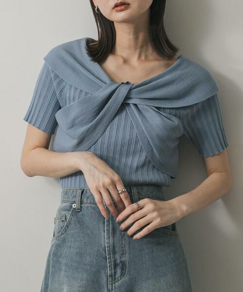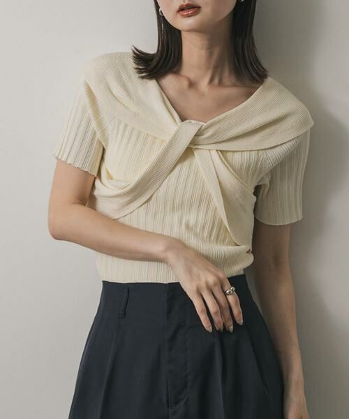 【上品に着こなす。クロスデザインが目を引くリブニットプルオーバー】