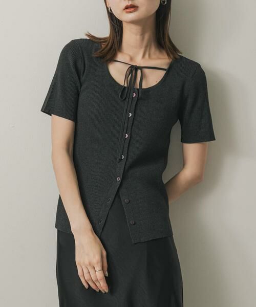 ・広めのネックとボタン使いがデコルテをきれいに演出