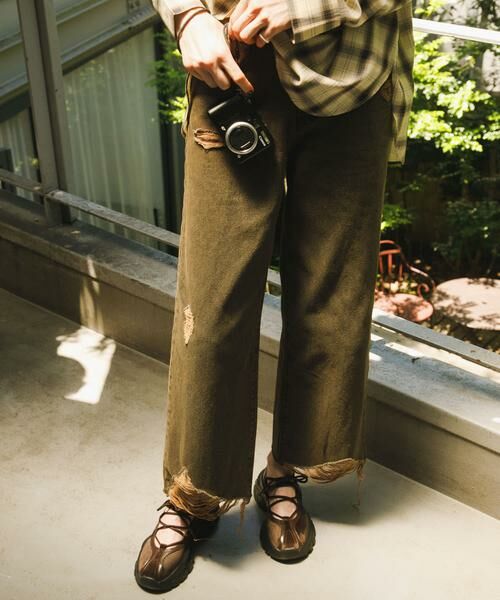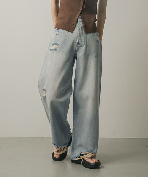 【クラッシュ加工が目を引く、ダメージストレートデニム】