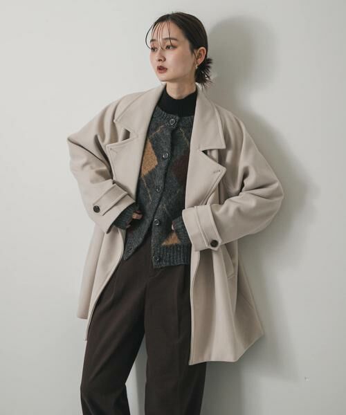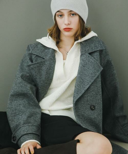 大きめの襟と、ゆったりとしたコクーンシルエットが特徴のショートコート。程よい厚みと起毛感のある素材で、暖かさも兼ね備えています。厚手のニットやスウェットの上からも楽に羽織れるので、寒い季節も安心。さっと羽織るだけで、こなれ感のある大人のスタイルが完成します。