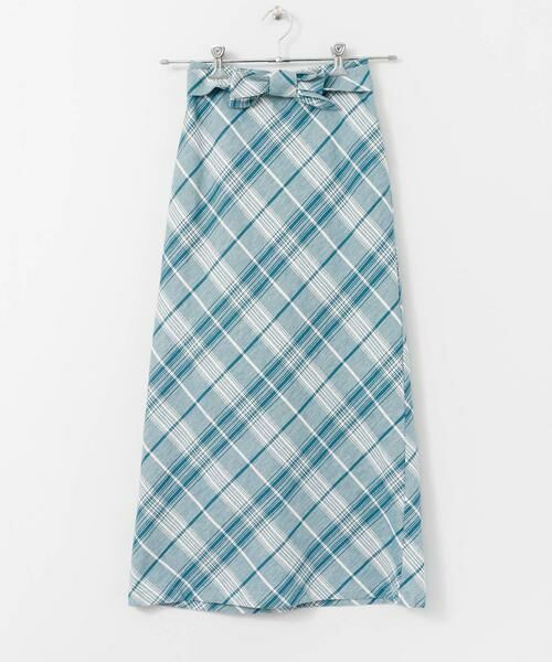 スッキリとしたタイトシルエットが特長のナロースカート。夏らしいカラーリングのチェック柄に仕立てた魅力的な一着です。トップスをインして、付属のリボンでウエストマークするとよりスタイルアップも狙えます。